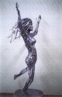 A howling wolf 8 feet high and 10 feet long made of welded stainless steel. SOLD.